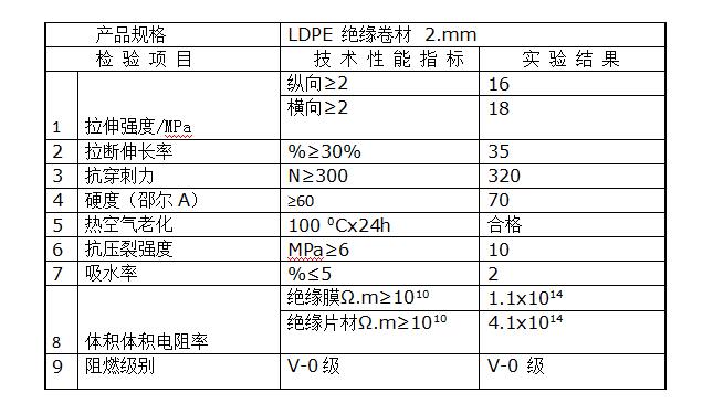 本公司新研究出的阻燃絕緣卷材指標: